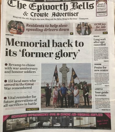 Here, we earned the front page spot on the Epworth Bells - a local newspaper covering stories from Epworth, Crowle and the Isle of Axholme.