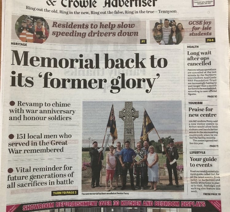 The story featured was one sharing the heart-warming news that a local war memorial had been restored back to its former glory. You can read the full article on the Doncaster Free Press website.